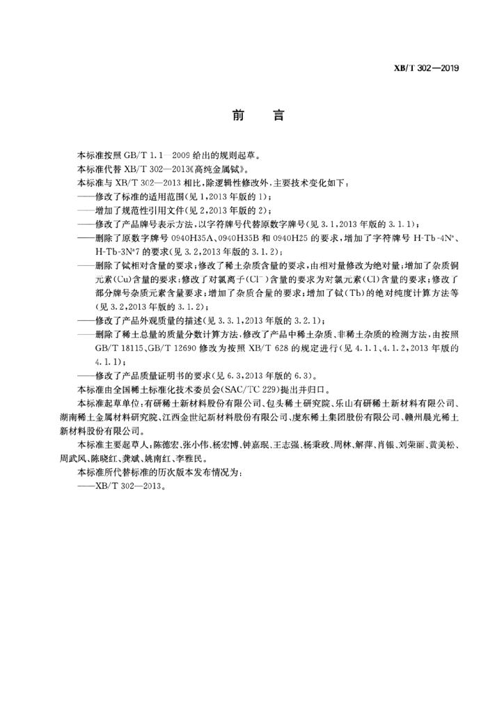 - 代替标准:XB/T 302-2013