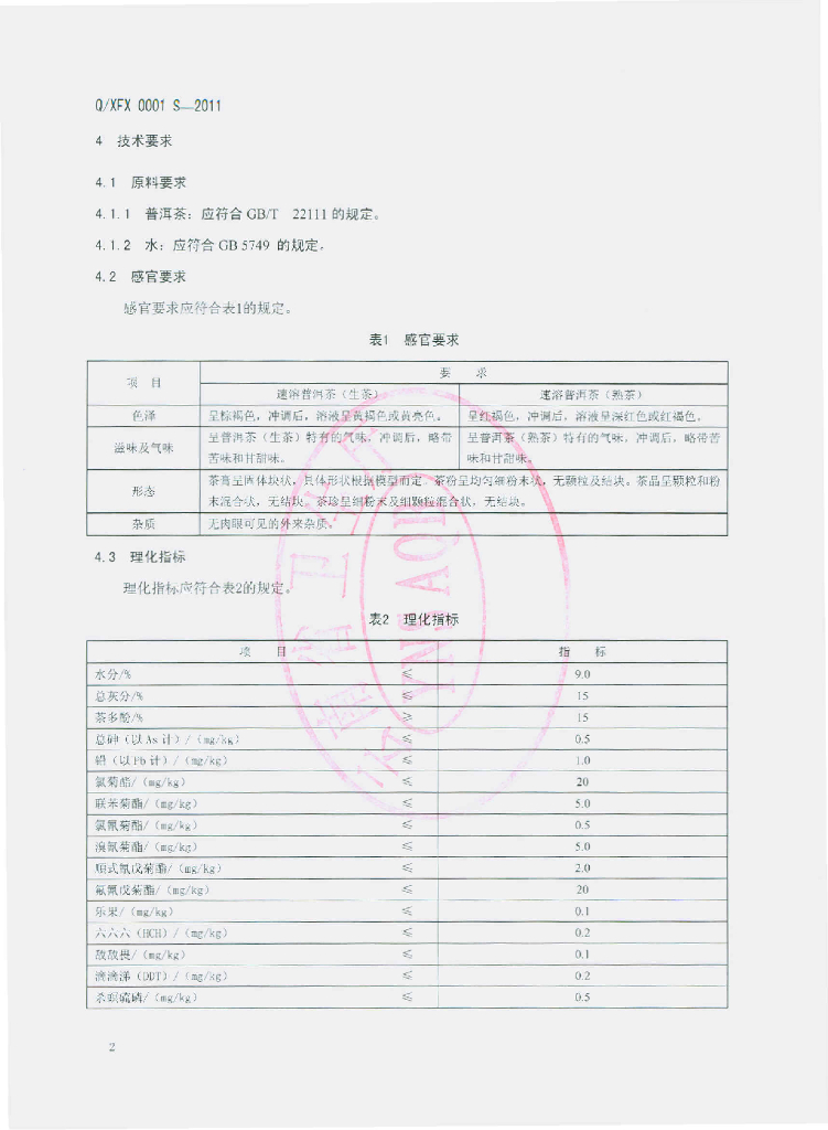 Q/XFX 0001S-2011 速溶普洱茶