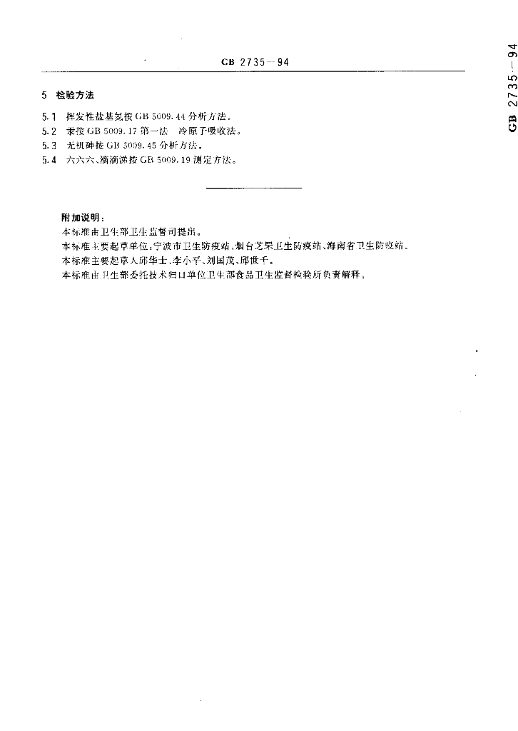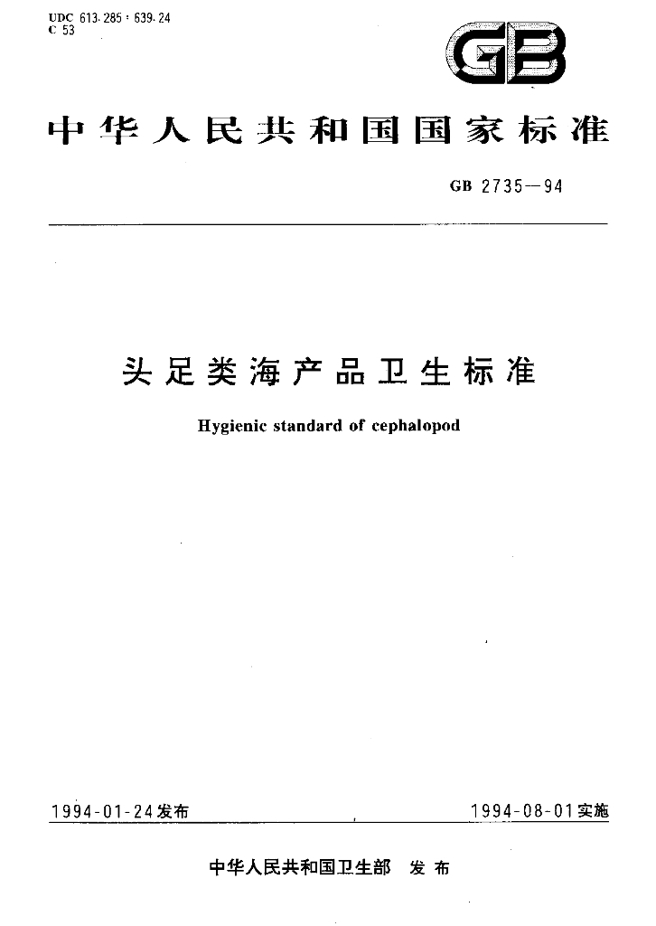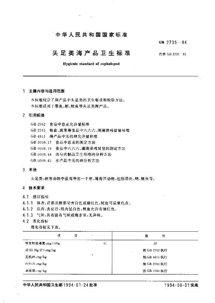 GB 2735-1994 头足类海产品卫生标准