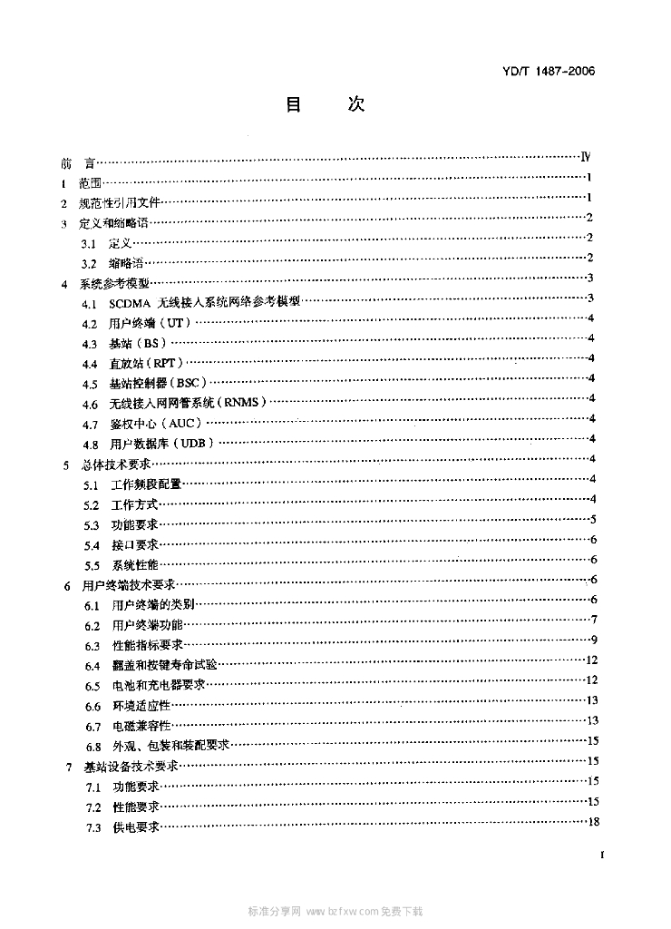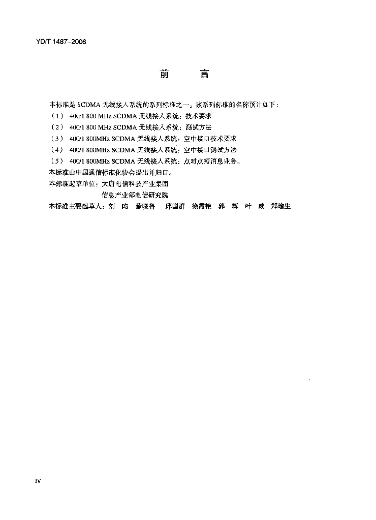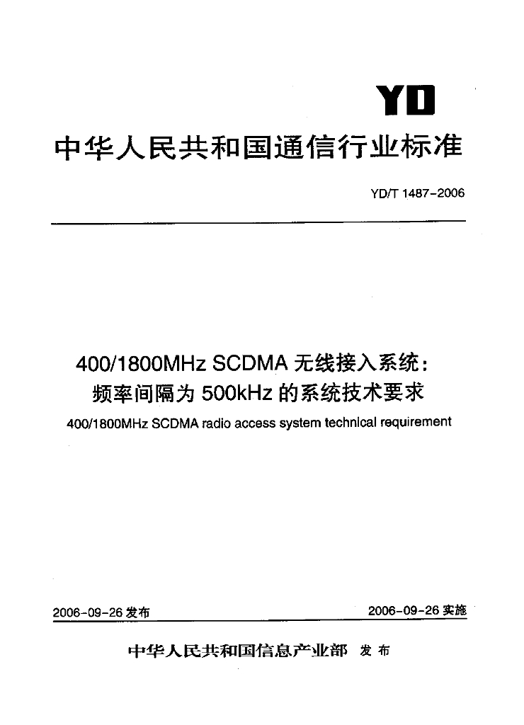YD/T 1487-2006 400/1800MHz SCDMA 无线接入系统:频率间隔为 500kHz 的系统技术要求