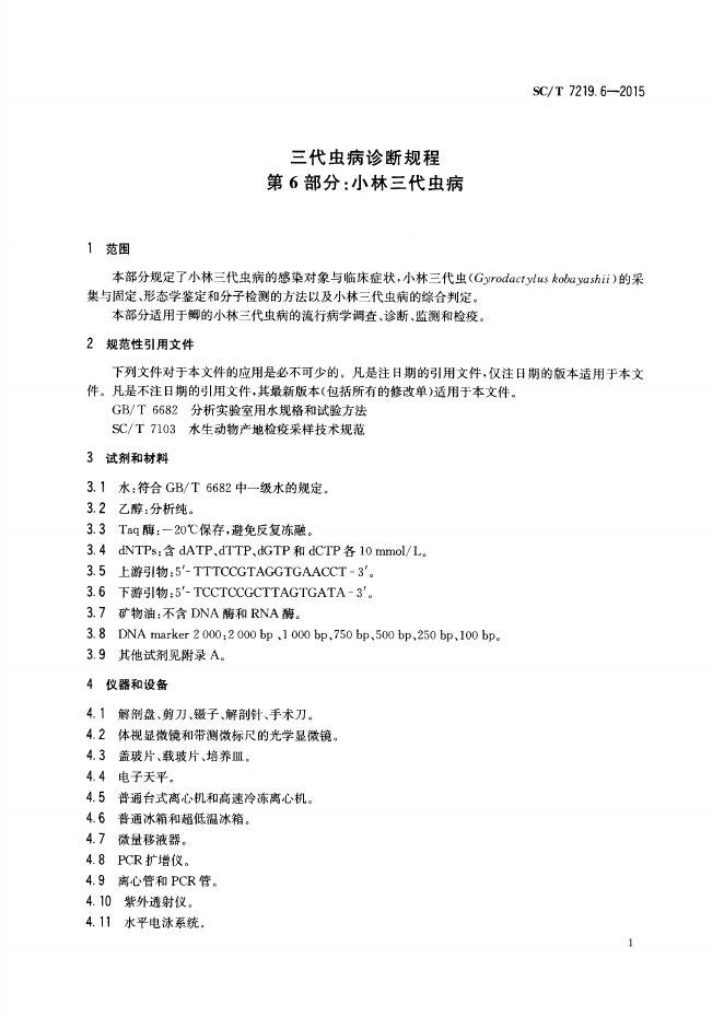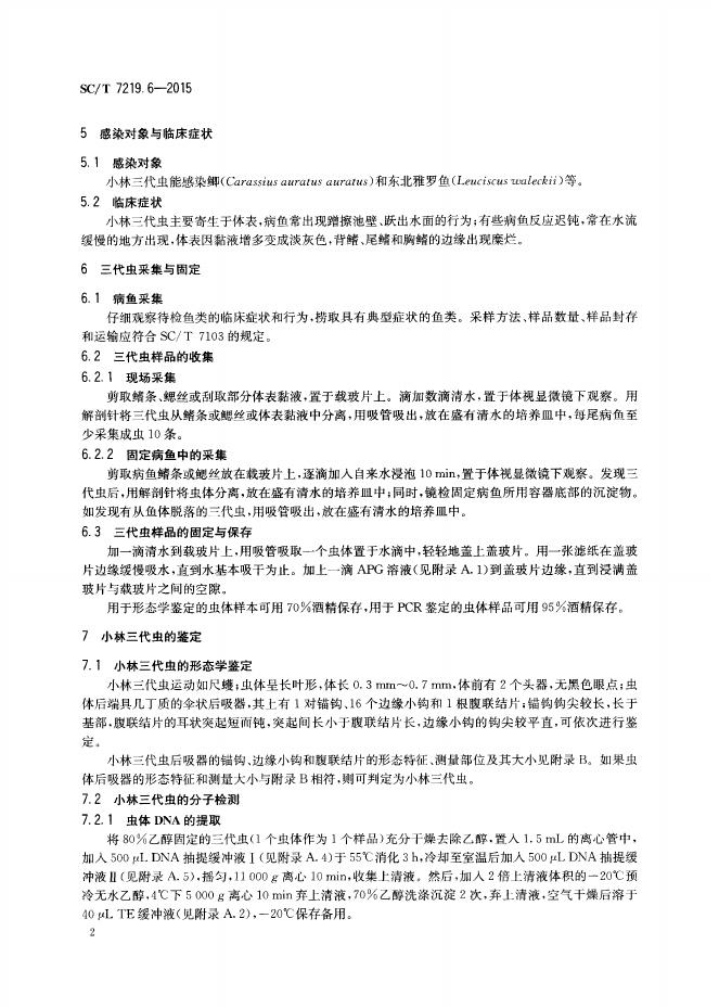 SC/T 7219.6-2015 三代虫病诊断规程 第6部分:小林三代虫病
