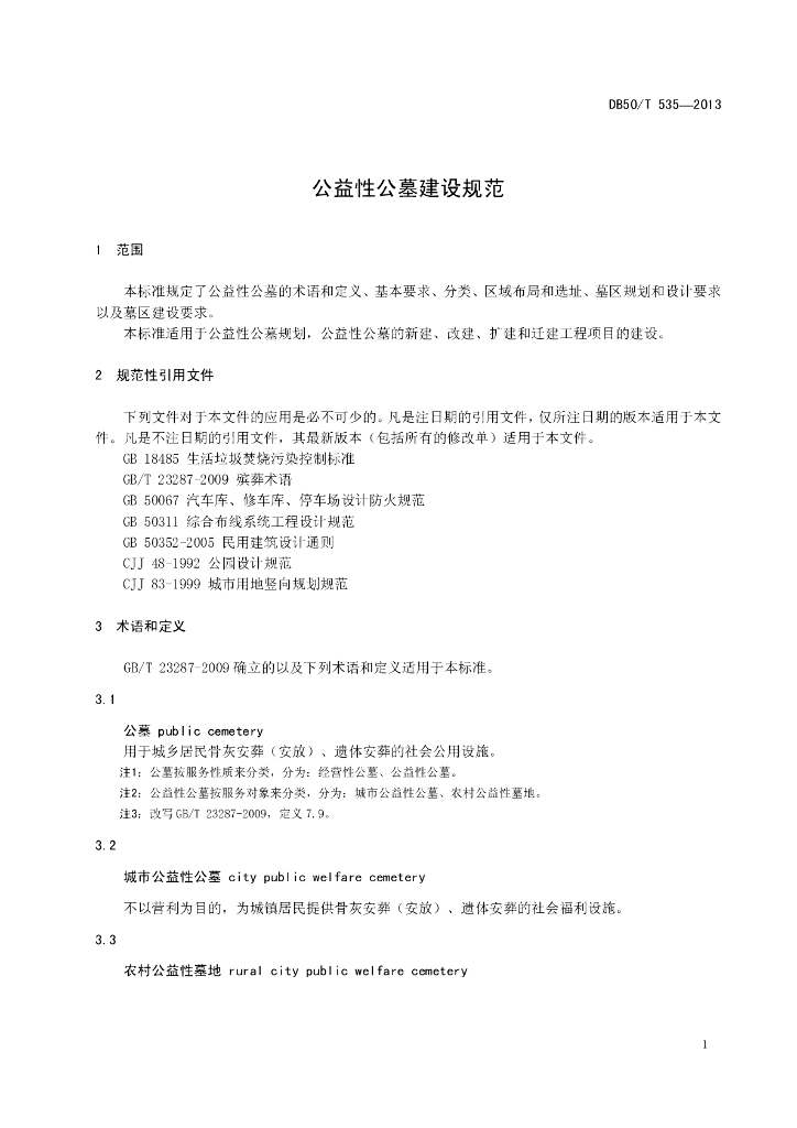 DB50/T 535-2013 公益性公墓建设规范