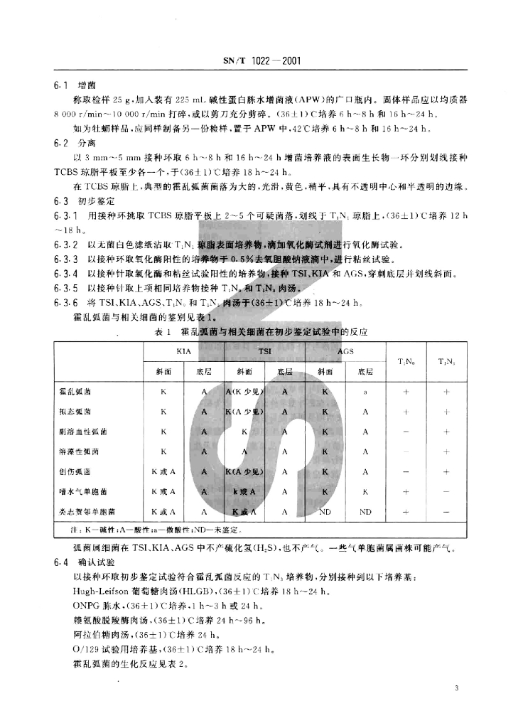 SN/T 1022-2001 出口食品中霍乱弧菌检验方法