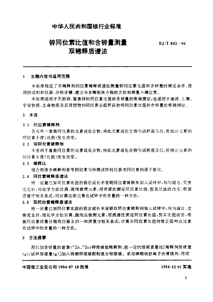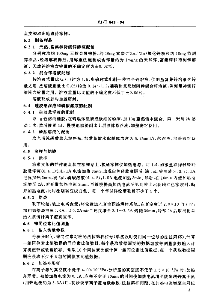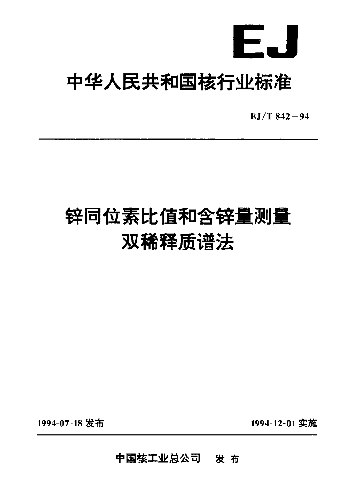 EJ/T 842-1994 锌同位素比值和含锌量测量双稀释质谱法