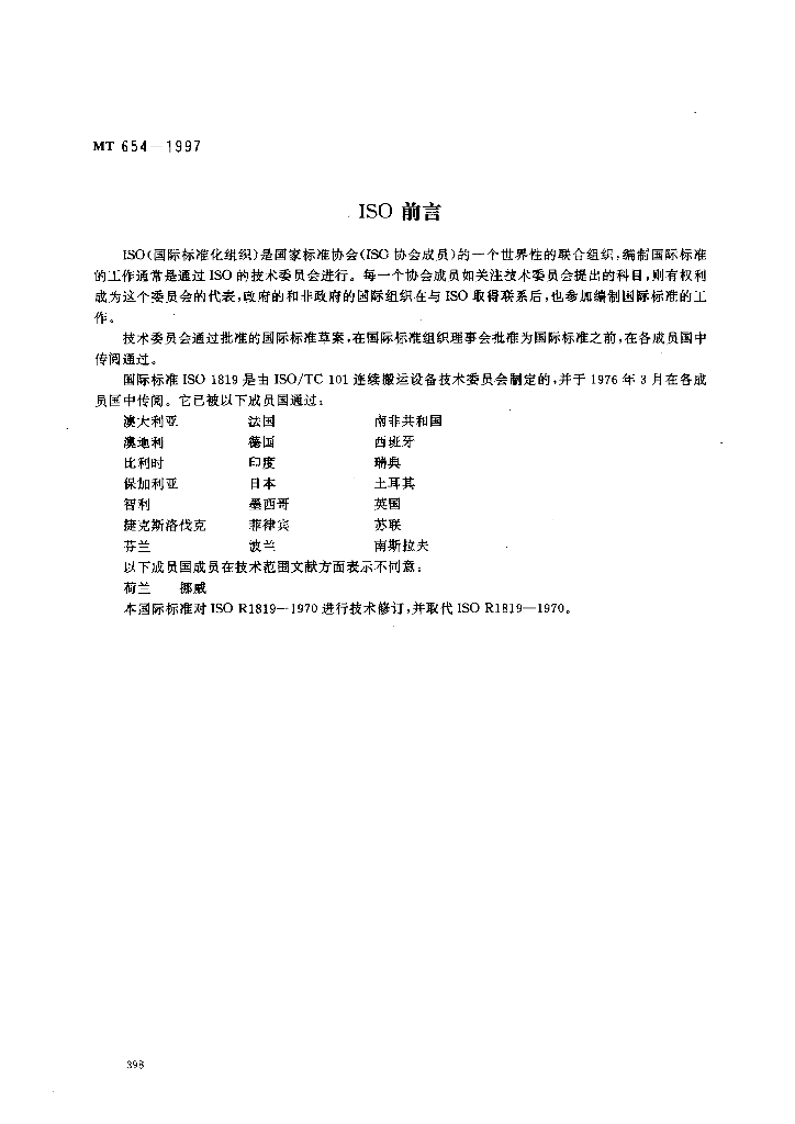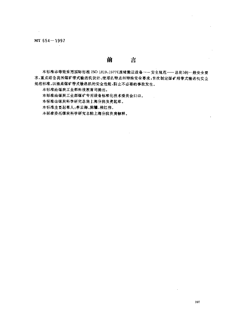 MT 654-1997 煤矿用带式输送机安全规范