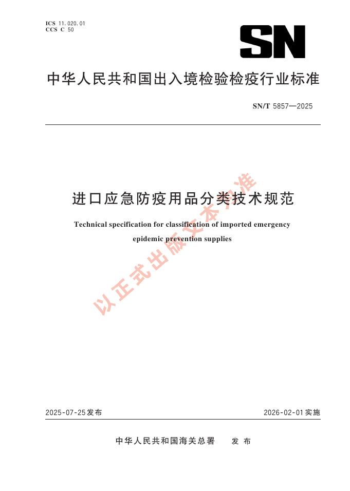 SN/T 5857-2025 进口应急防疫用品分类技术规范