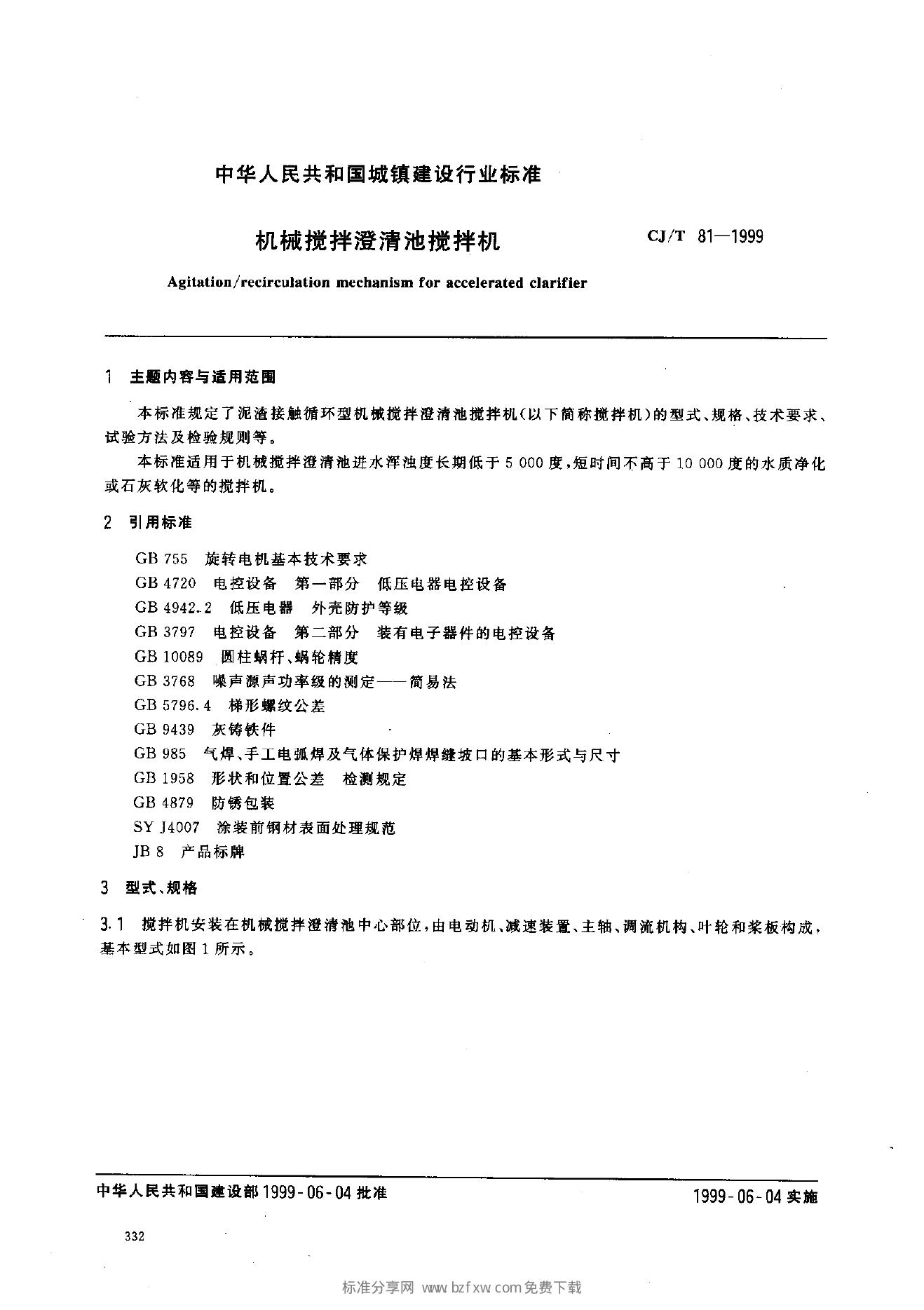 CJ/T 81-1999 机械搅拌澄清池搅拌机