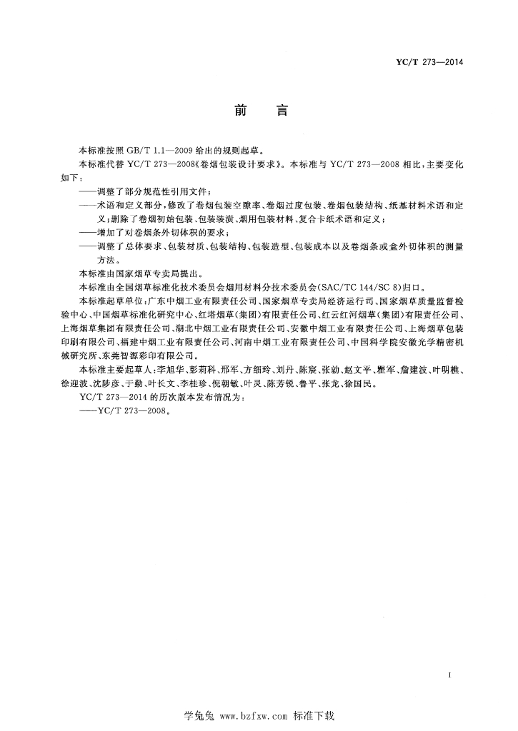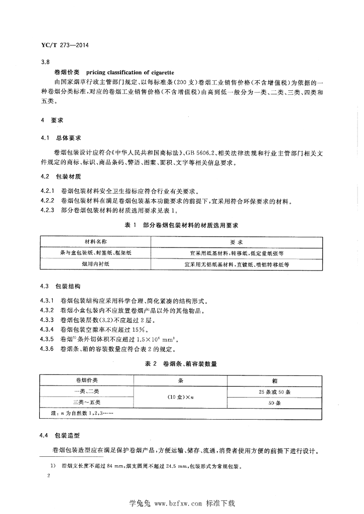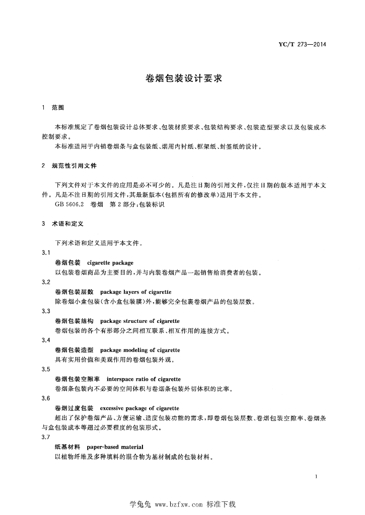 YC/T 273-2014 卷烟包装设计要求