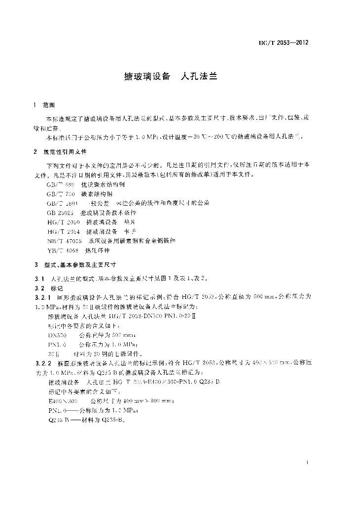 HG/T 2053-2012 搪玻璃设备 人孔法兰