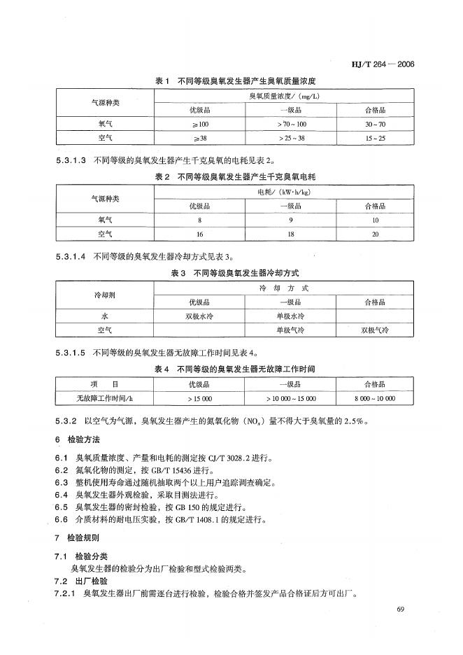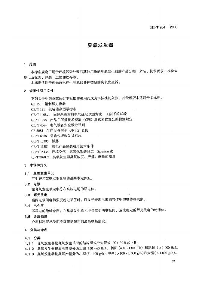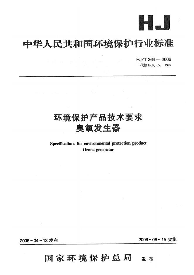 HJ/T 264-2006 环境保护产品技术要求 臭氧发生器