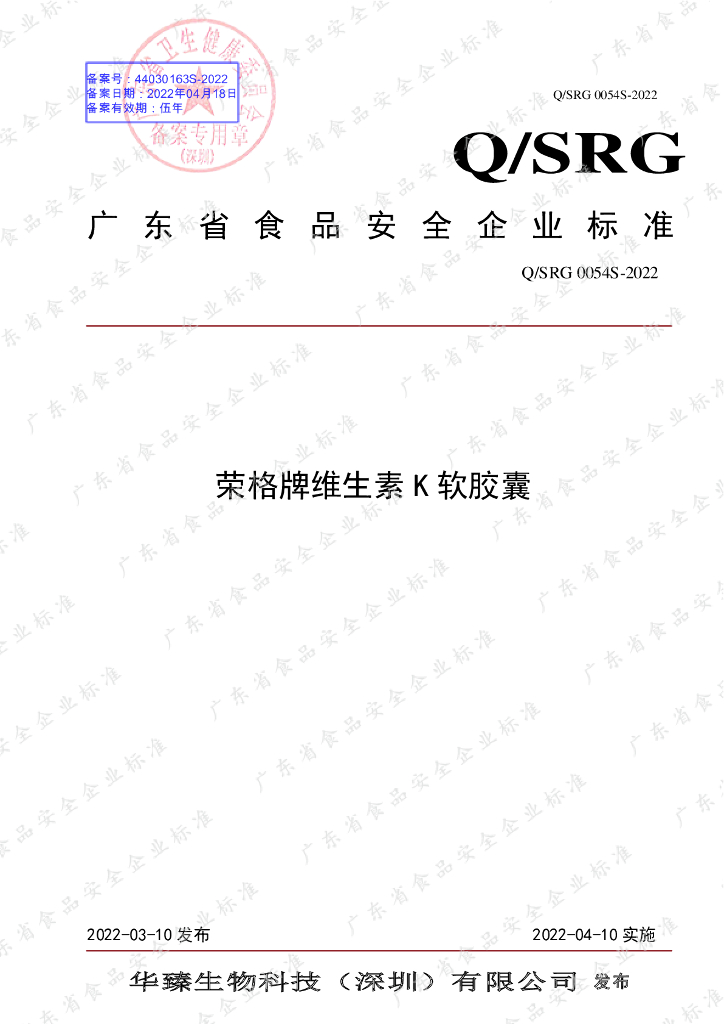 Q/SRG 0054S-2022 荣格牌维生素K软胶囊