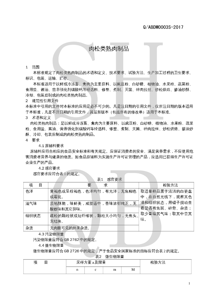Q/ABDM 0003S-2017 肉松类熟肉制品
