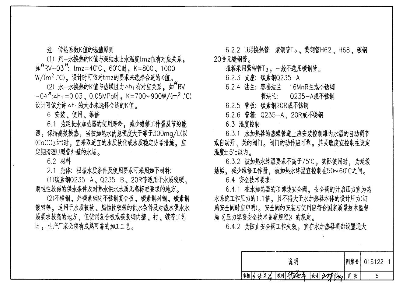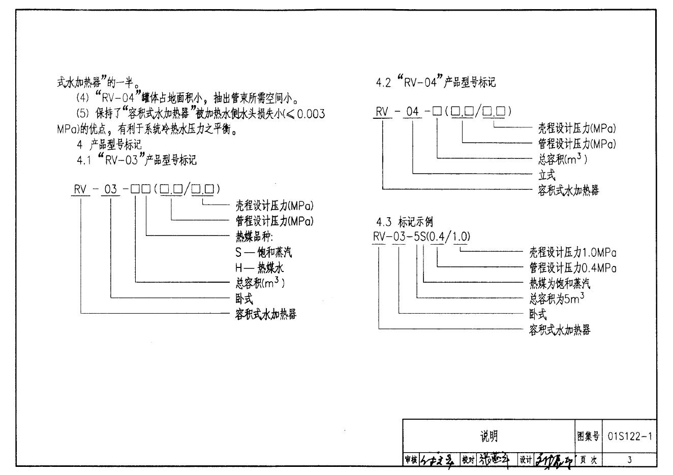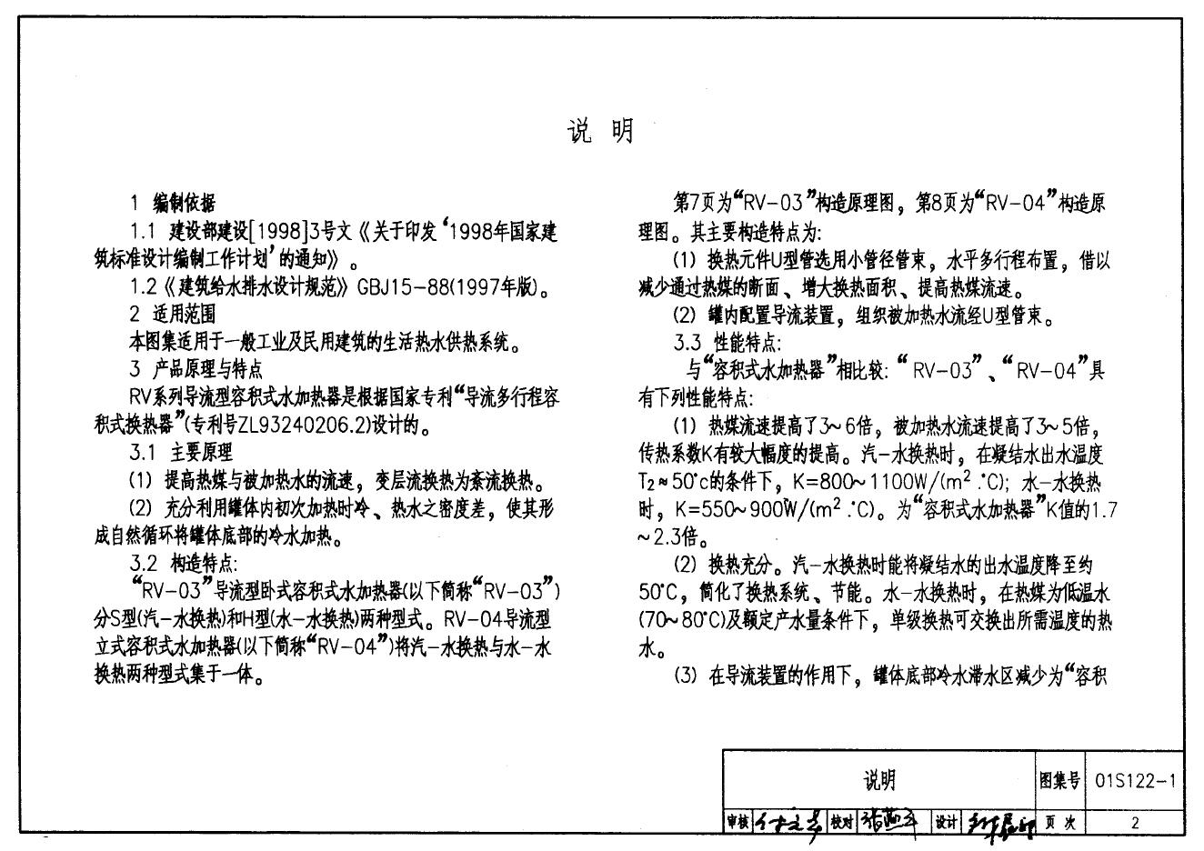 01S122-1 RV系列导流型容积式水加热器选用及安装图集