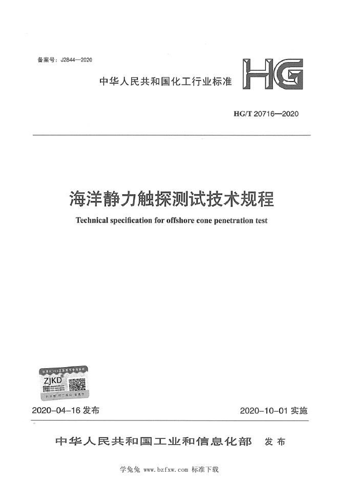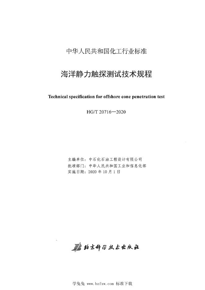 HG/T 20716-2020 海洋静力触探测试技术规程