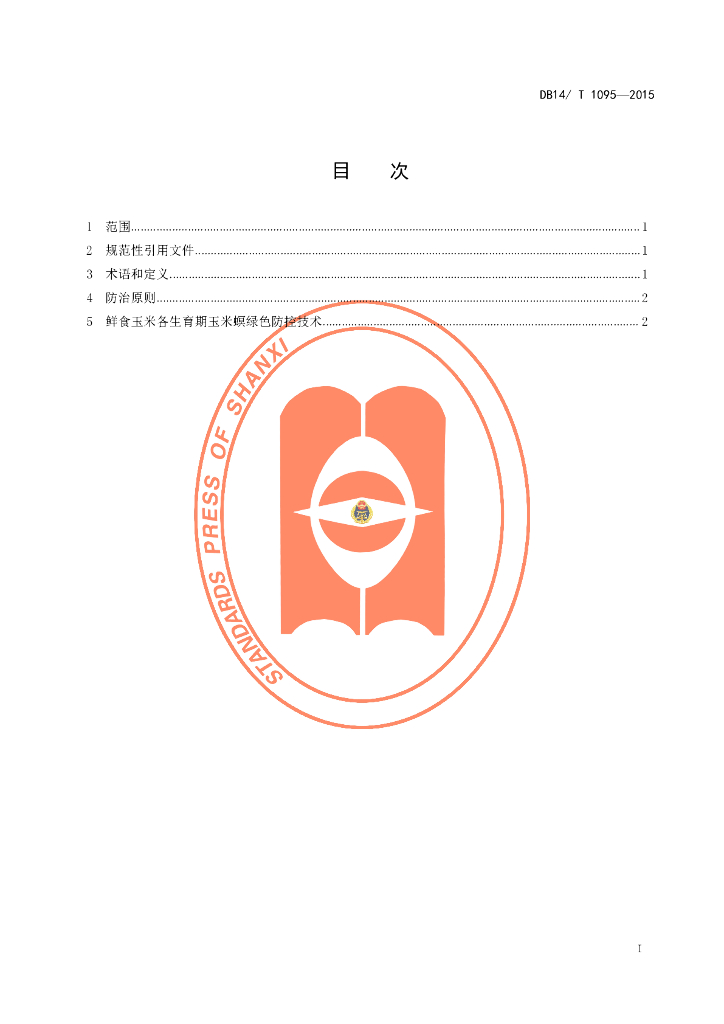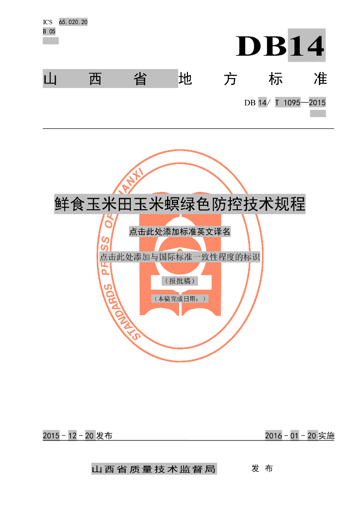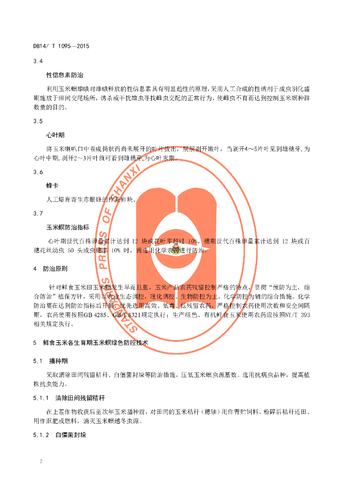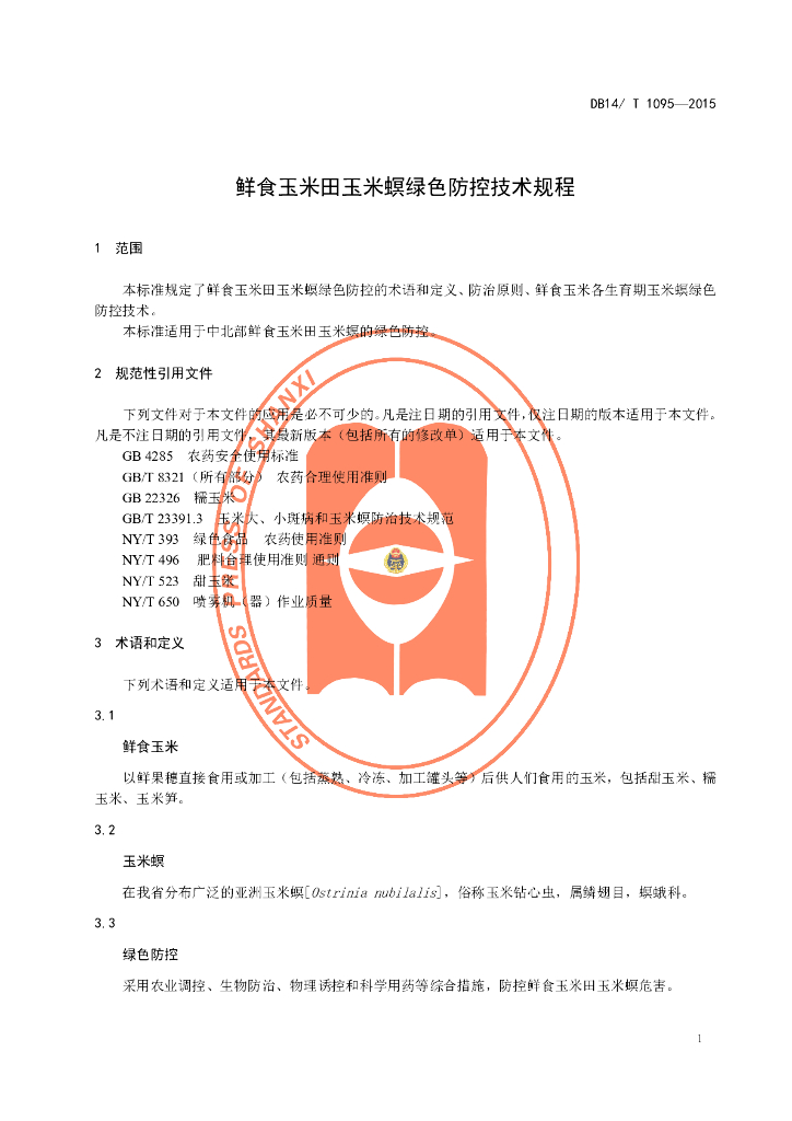 DB14/T 1095-2015 鲜食玉米田玉米螟绿色防控技术规程