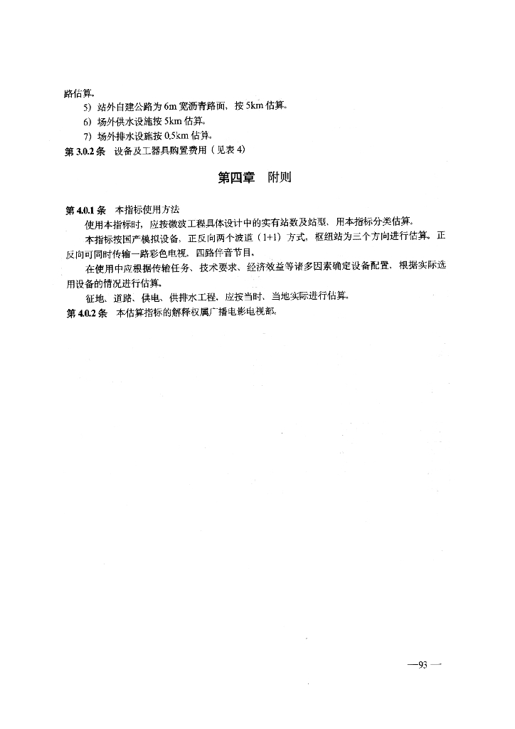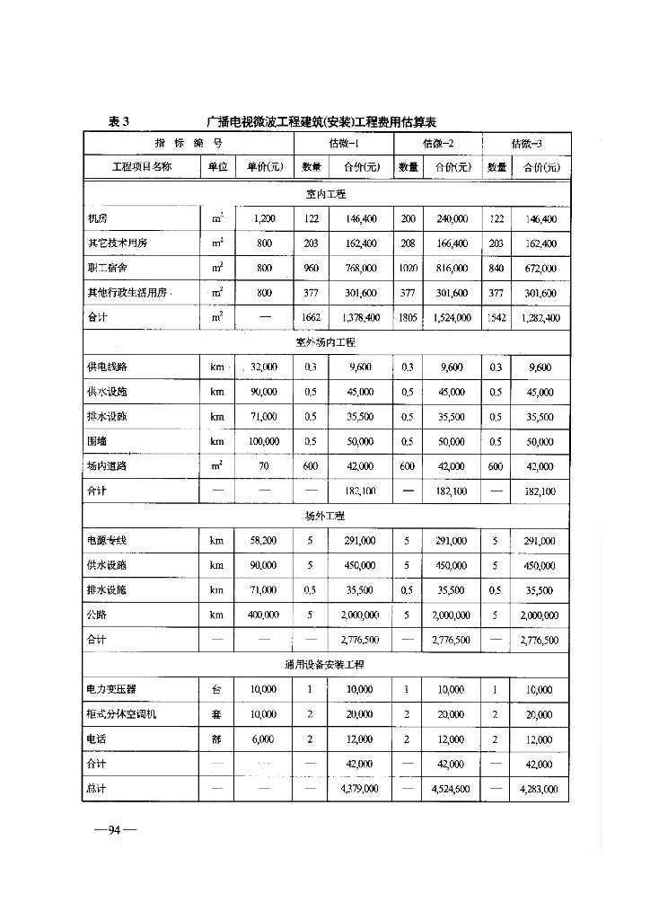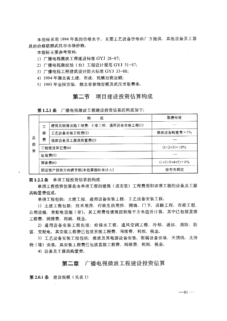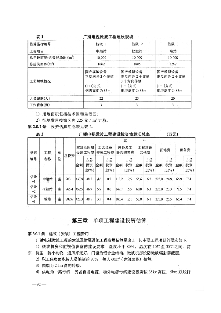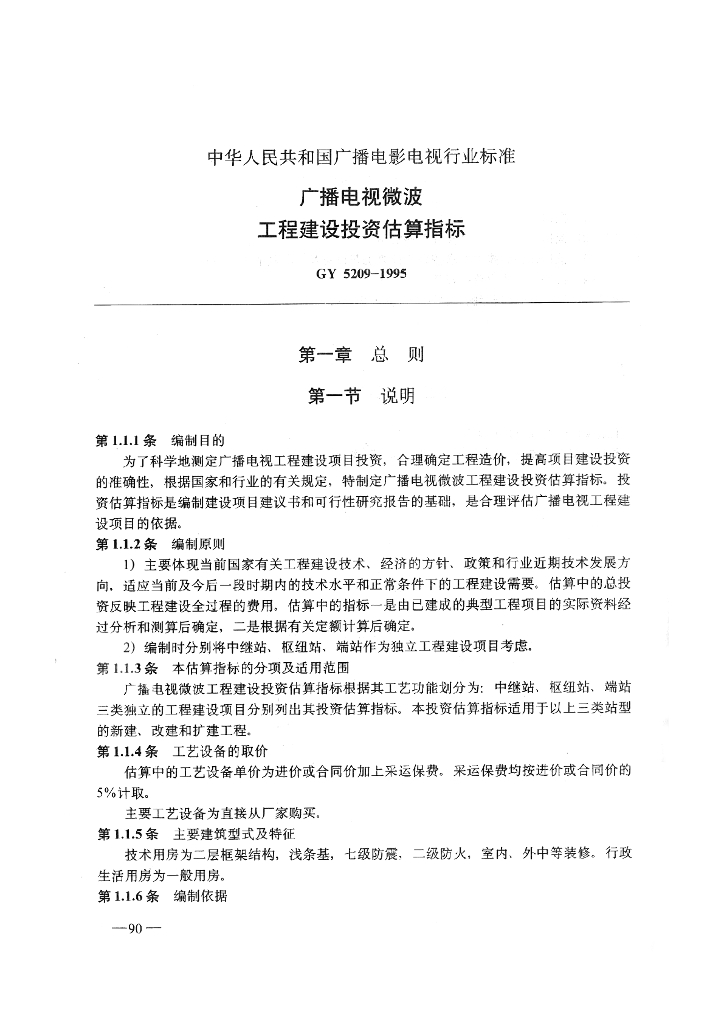 GY 5209-1995 广播电视微波工程建设投资估算指标