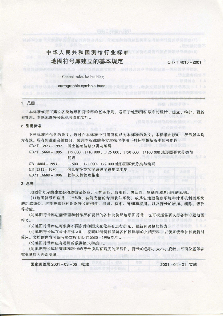 CH/T 4015-2001 地图符号库建立的基本规定