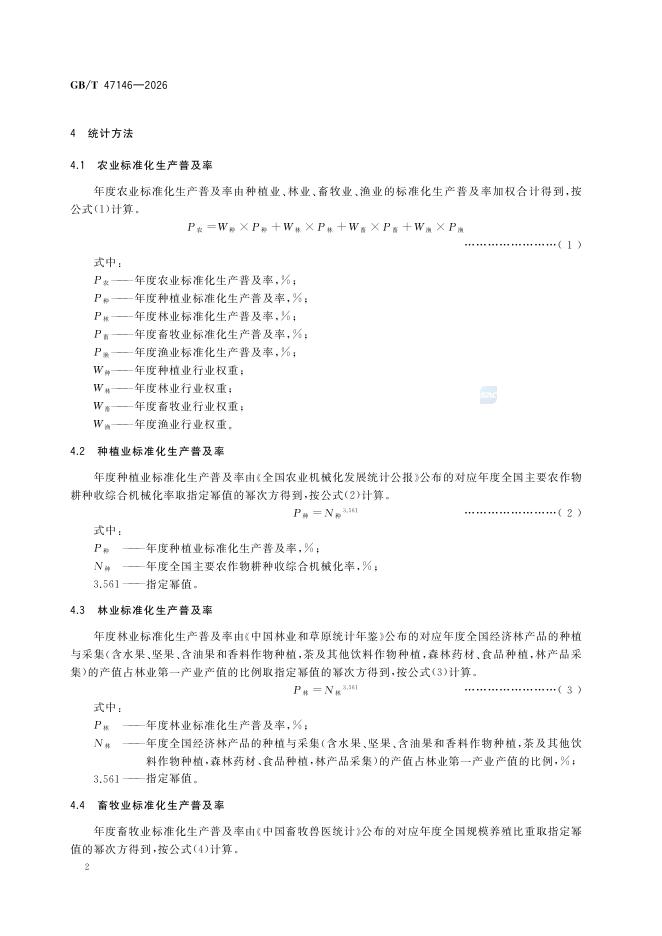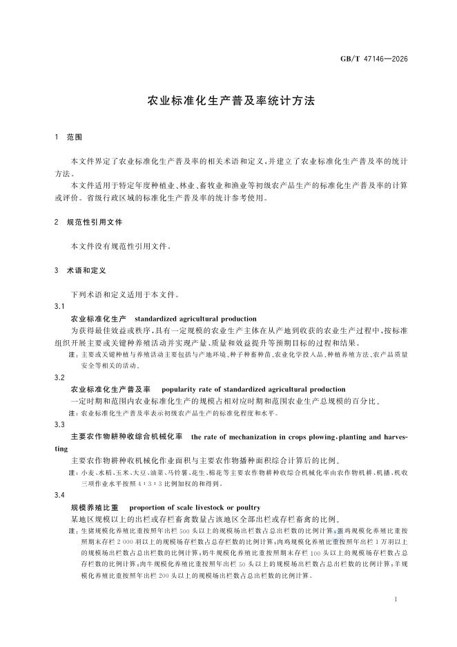 GB/T 47146-2026 农业标准化生产普及率统计方法