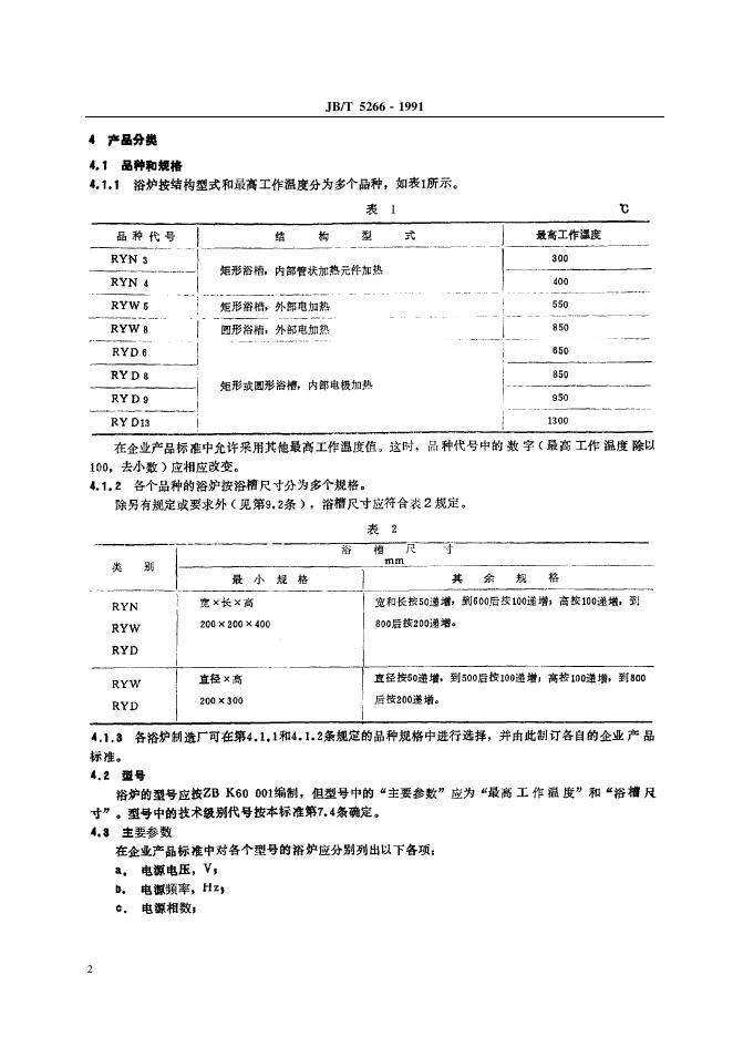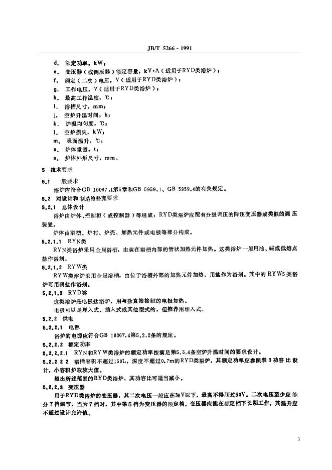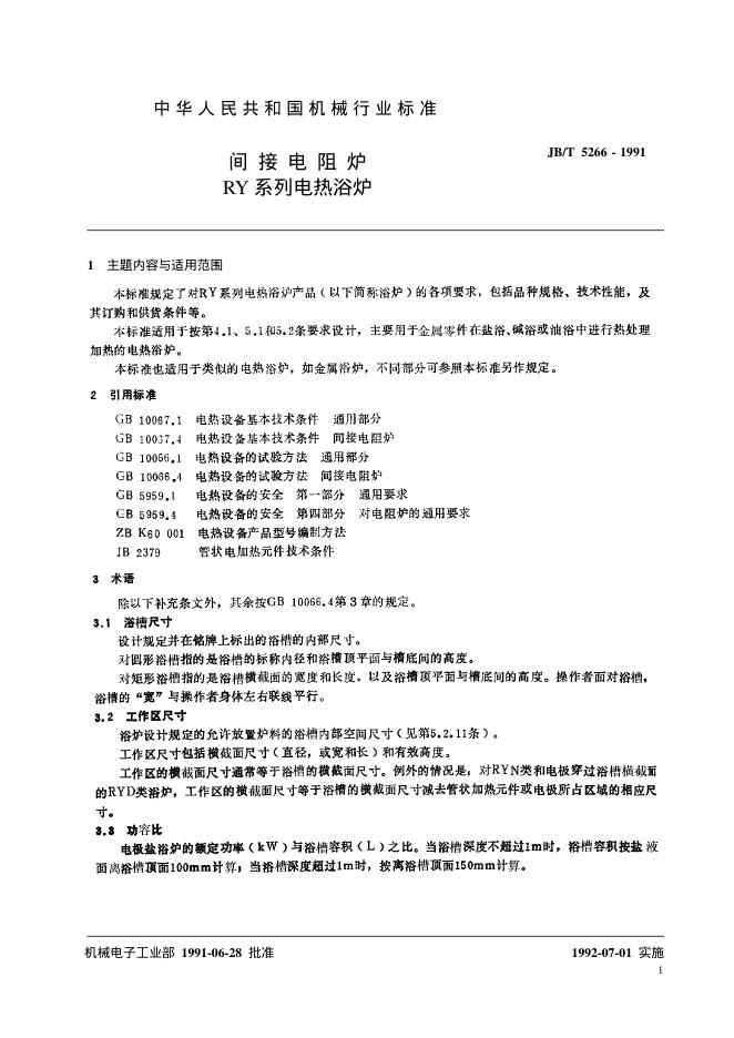 JB/T 5266-1991 间接电阻炉 RY系列电热浴炉