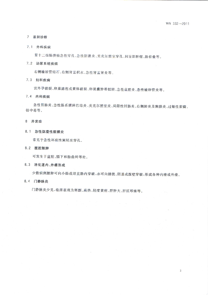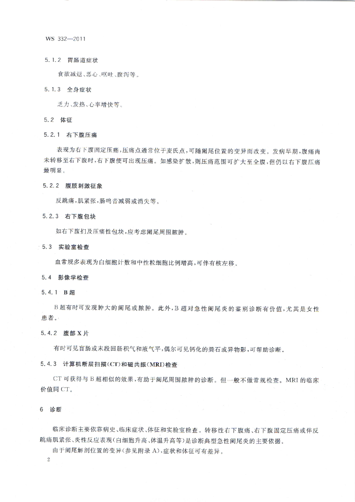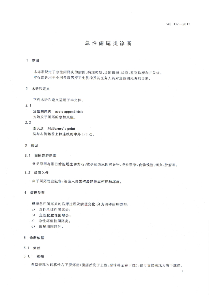 WS 332-2011 急性阑尾炎诊断