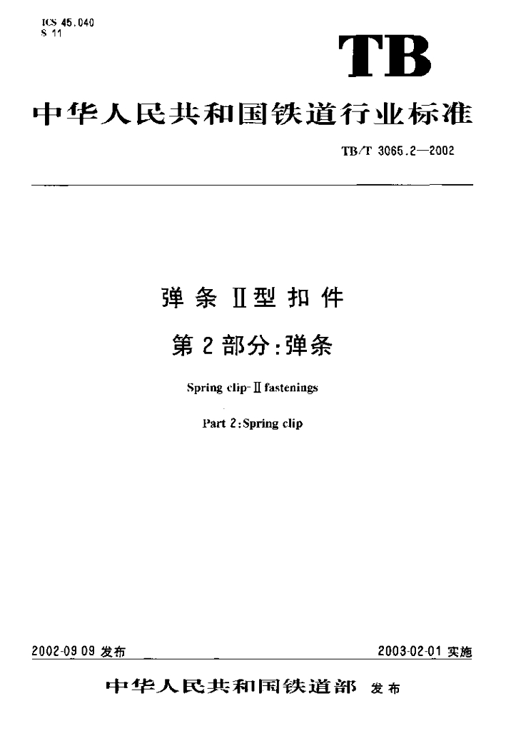 TB/T 3065.2-2002 弹条Ⅱ型扣件 第2部分:弹条