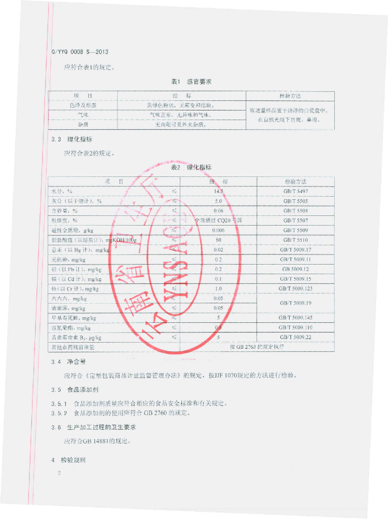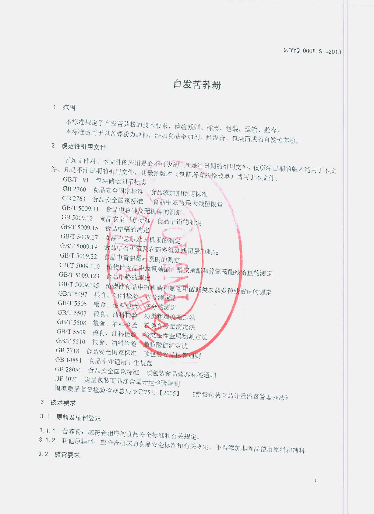 Q/YYQ 0008S-2013 自发苦荞粉
