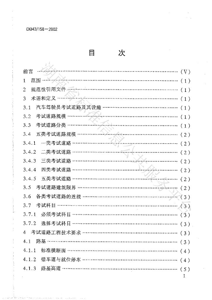 DB43/ 158-2002 汽车驾驶员场地考试道路及其设施设计规范