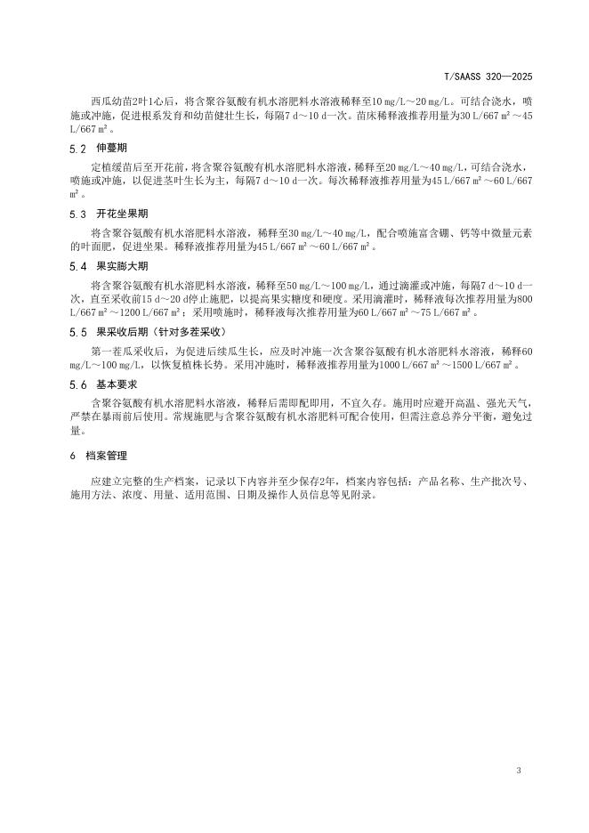 T/SAASS 320-2025 含聚谷氨酸有机水溶肥料在西瓜种植中的应用技术规程