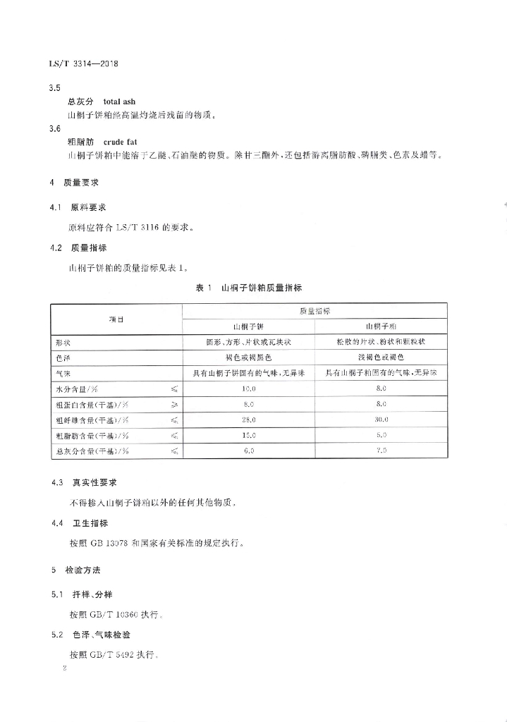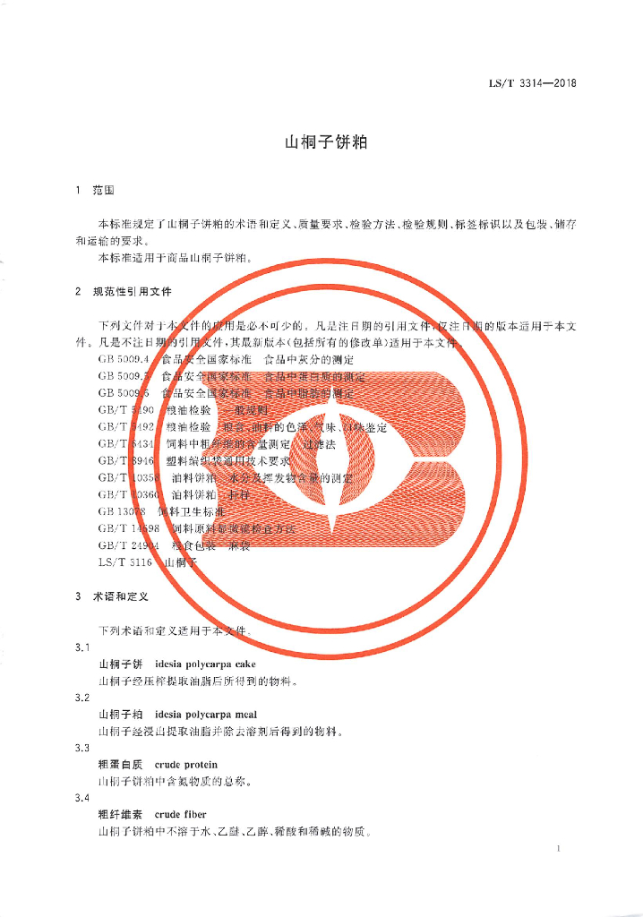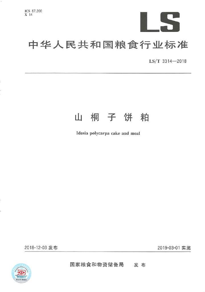 LS/T 3314-2018 山桐子饼粕