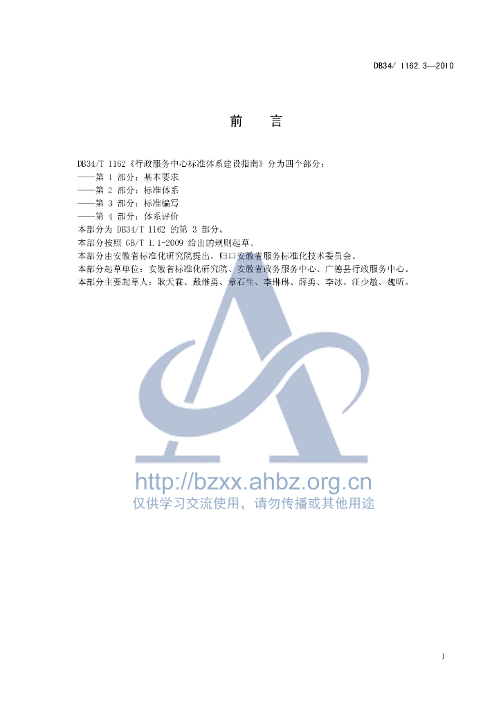 DB34/T 1162.3-2010 行政服务中心标准体系建设指南 第3部分:标准编写