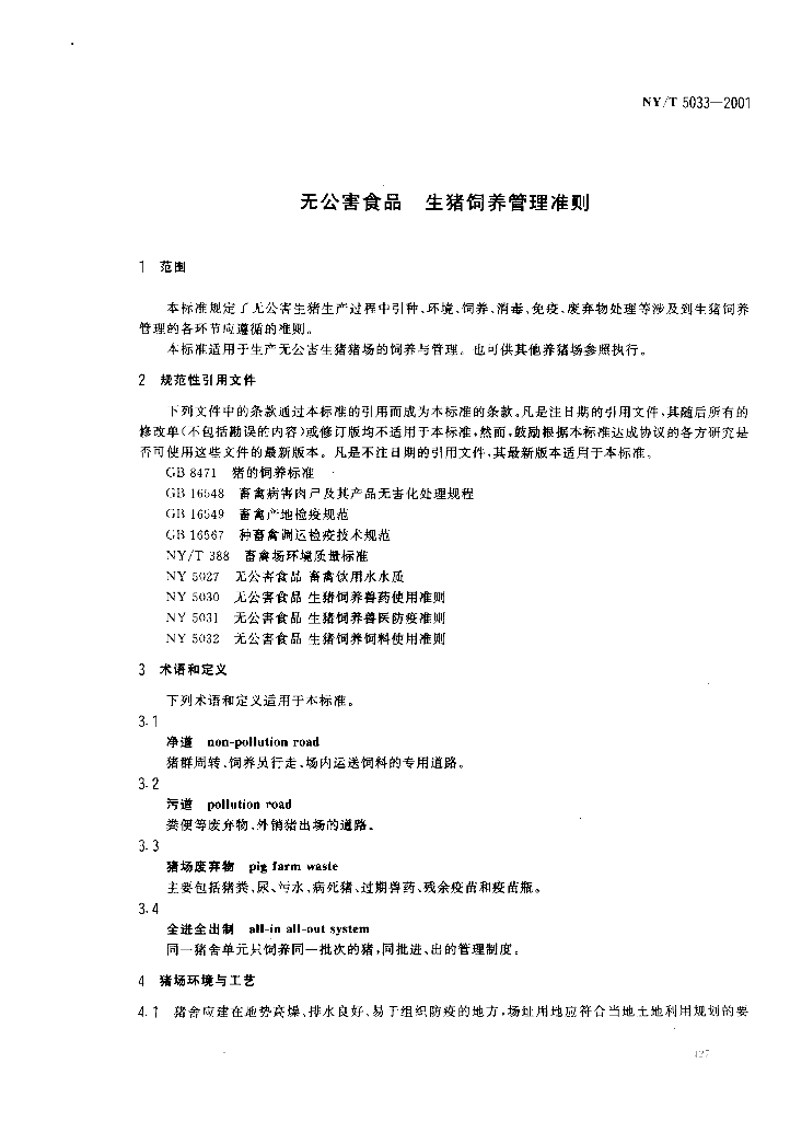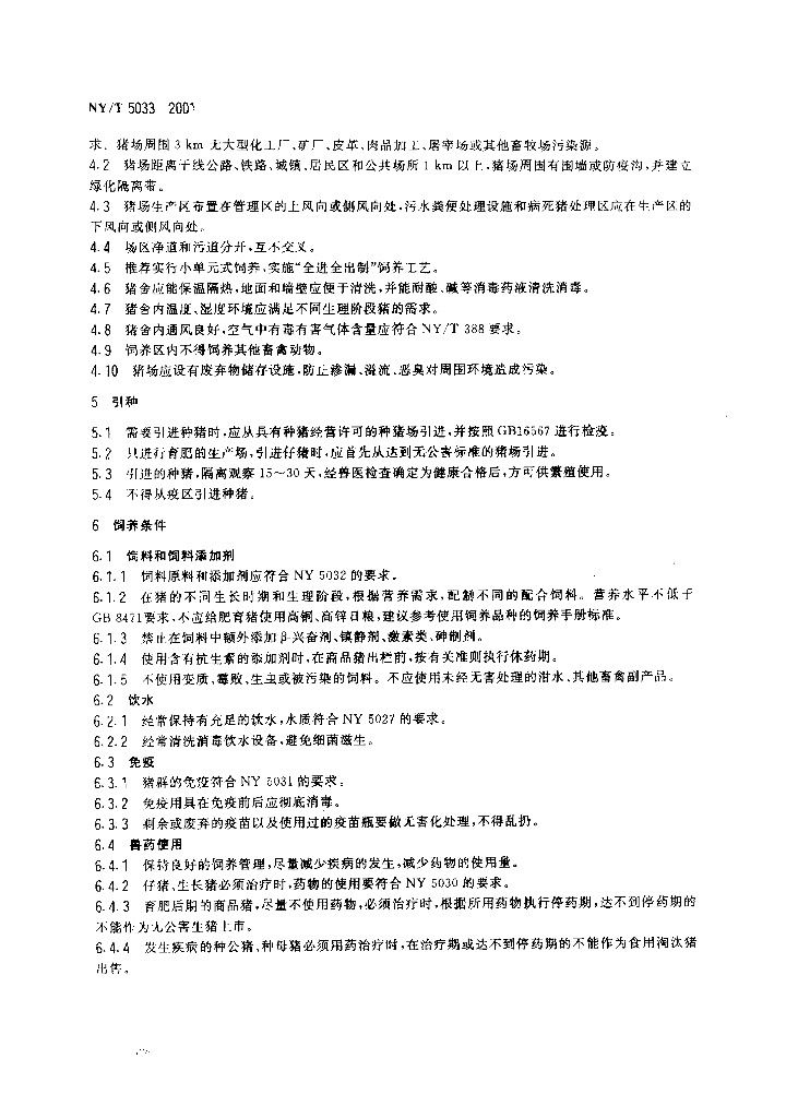 NY/T 5033-2001 无公害食品 生猪饲养管理准则