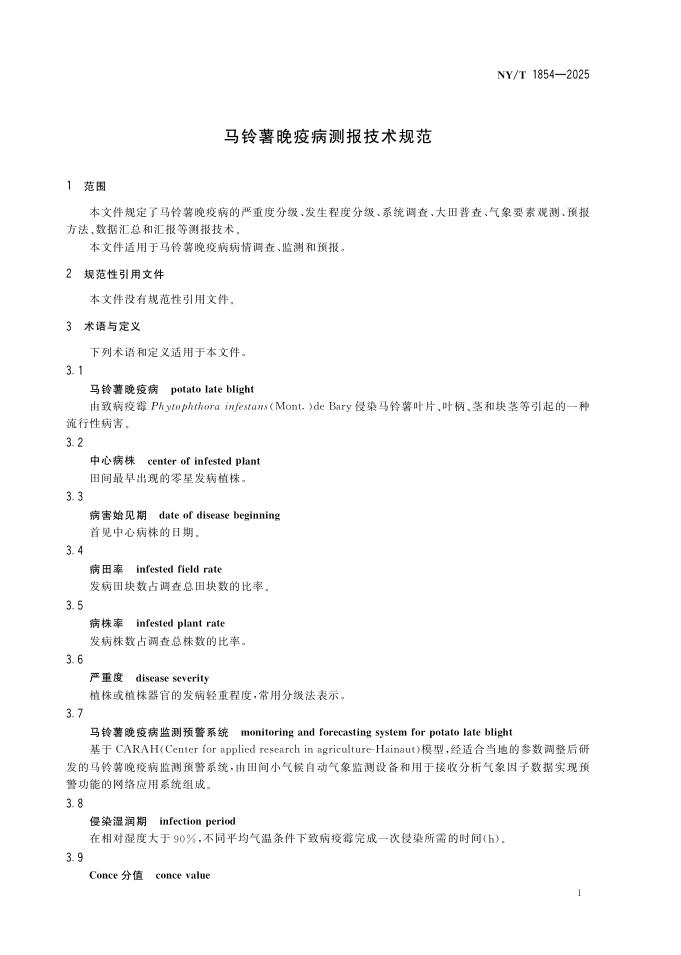 NY/T 1854-2025 马铃薯晚疫病测报技术规范