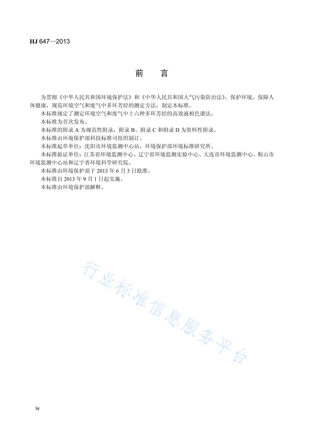 HJ 647-2013 环境空气和废气 气相和颗粒物中多环芳烃的测定 高效液相色谱法