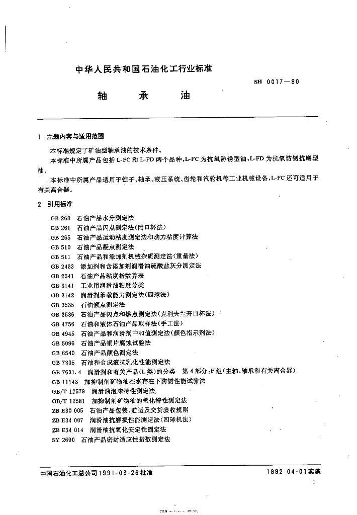 SH 0017-1990 轴承油
