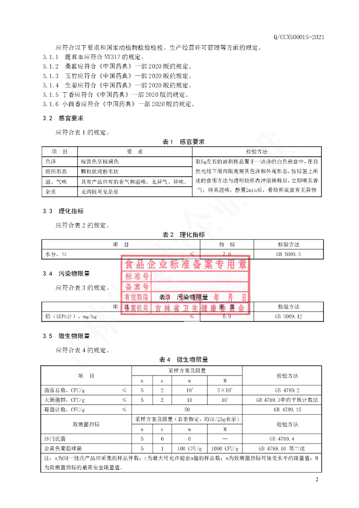 Q/CCXS 0001S-2021 鹿茸血固体饮料