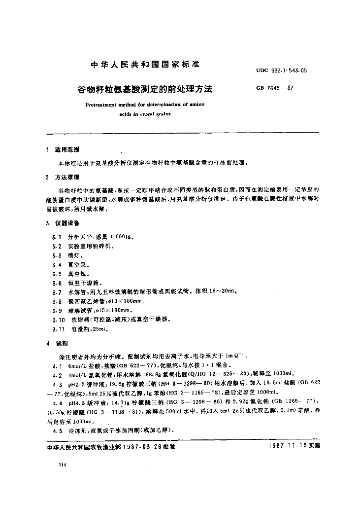 NY/T 56-1987 谷物籽粒氨基酸测定的前处理方法