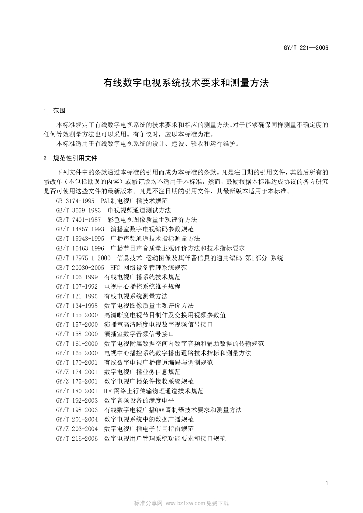 GY/T 221-2006 有线数字电视系统技术要求和测量方法