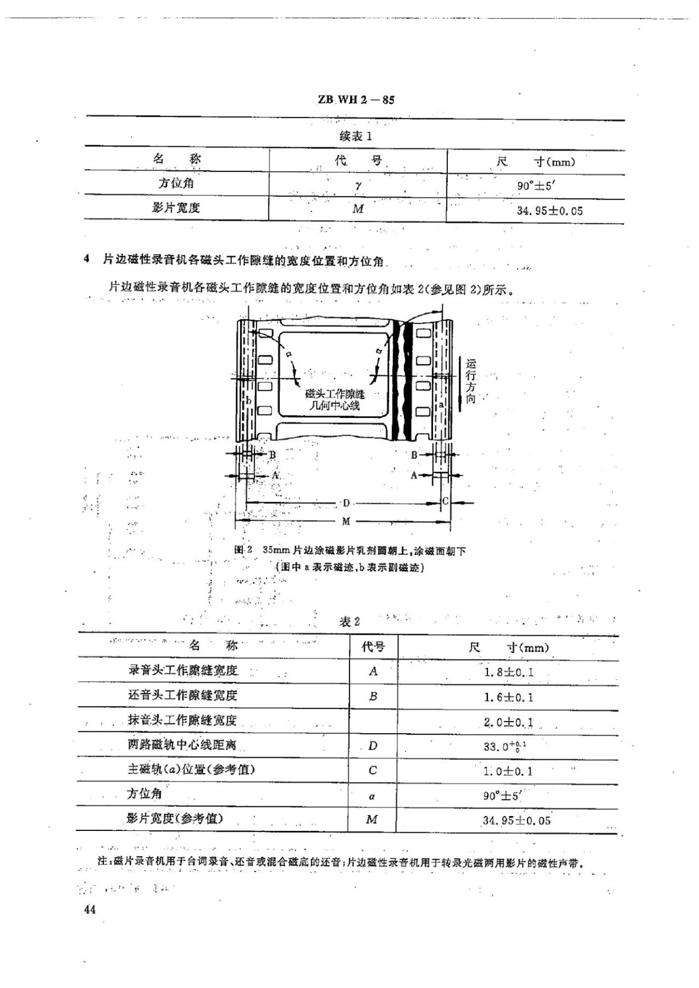 ZB WH 2-85 35mm光磁两用发行影片片边磁性转录设备的技术条件