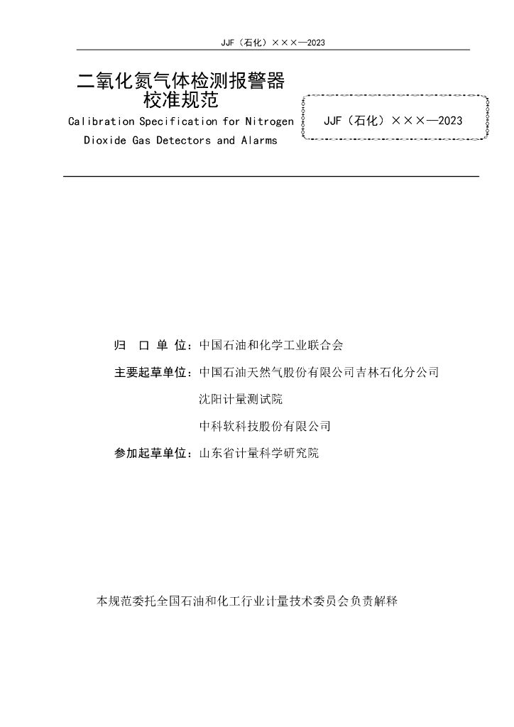 JJF(石化)090-2023 二氧化氮气体检测报警器校准规范(报批稿)