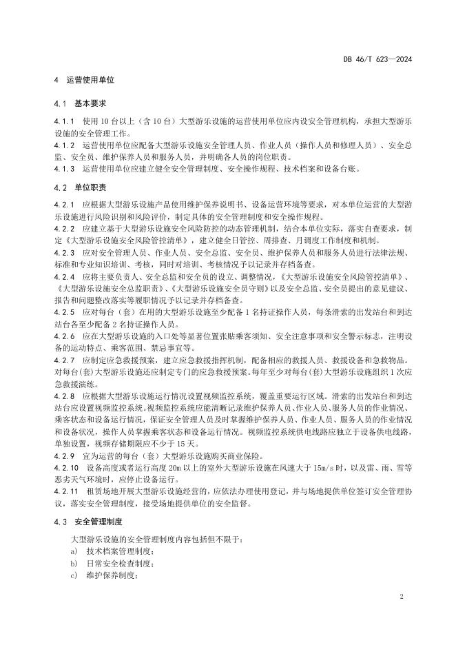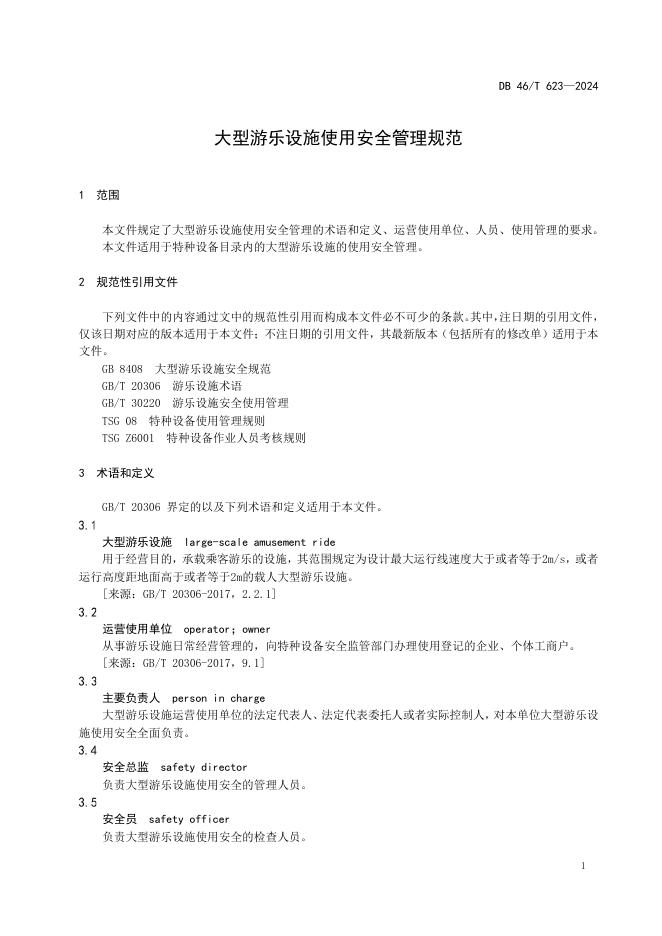 DB46/T 623-2024 大型游乐设施使用安全管理规范