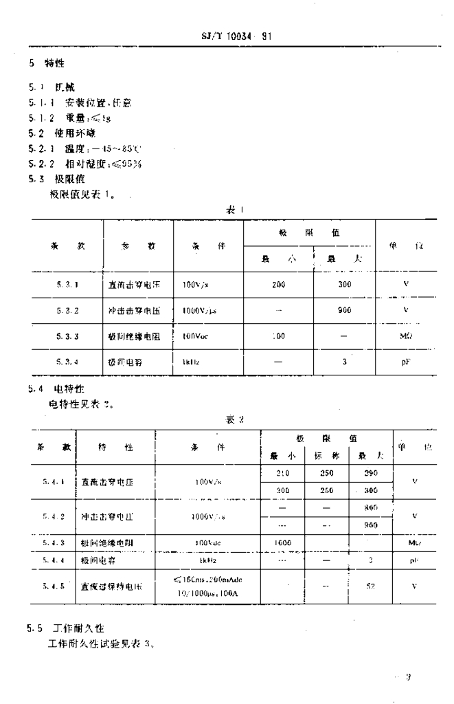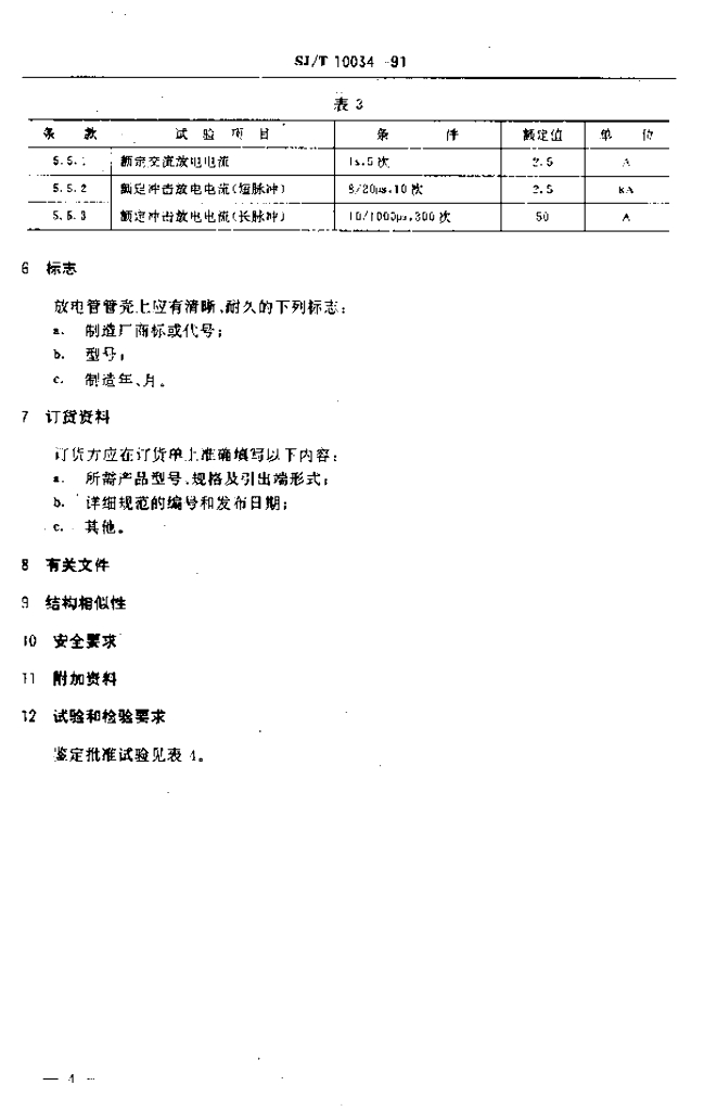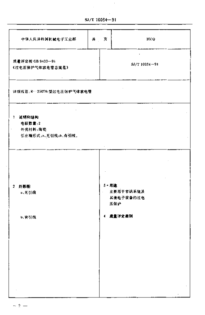 SJ/T 10034-1991 电子元器件详细规范 R-250TB型过电压保护气体放电管 (可认证用)