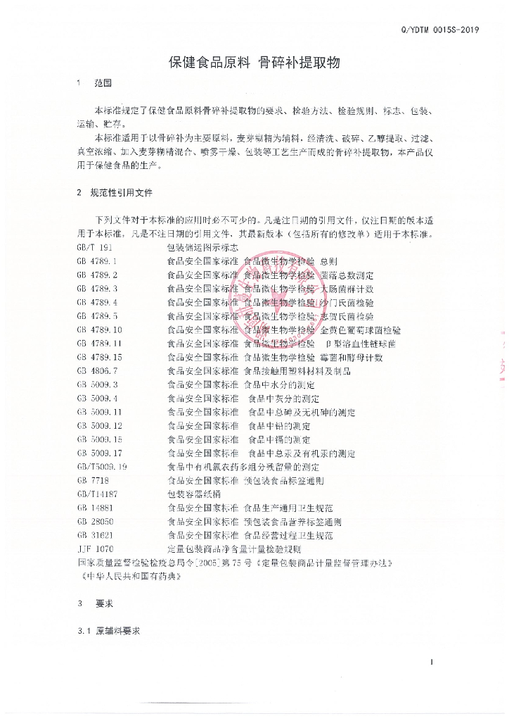 Q/YDTM 0015S-2019 保健食品原料 骨碎补提取物