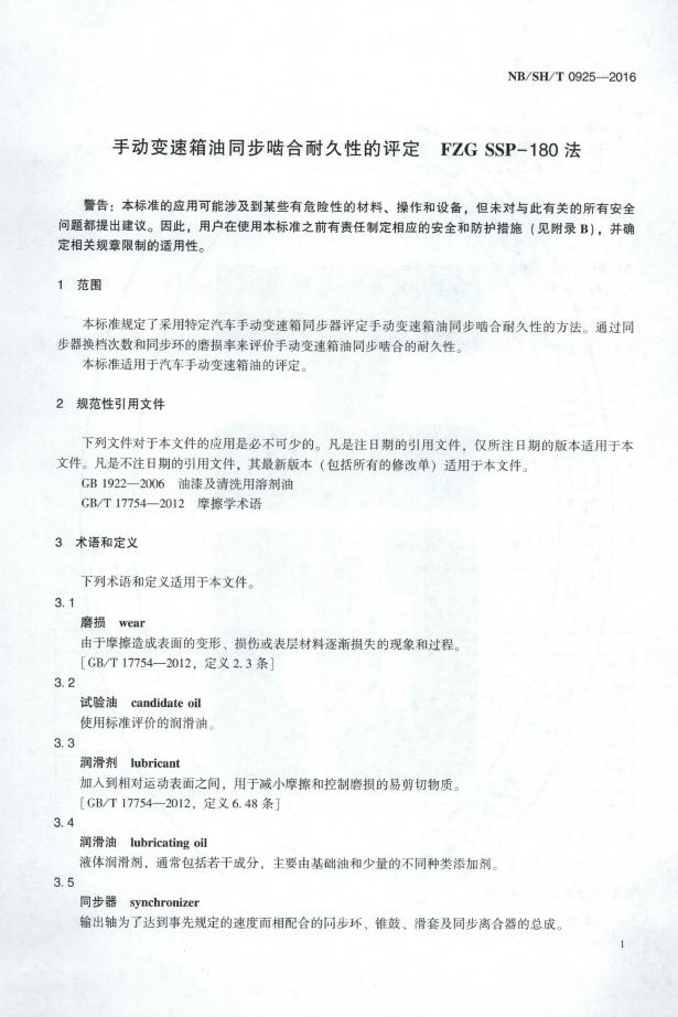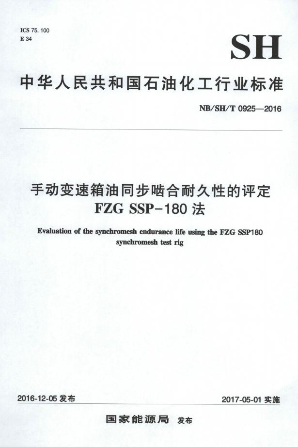 SH/T 0925-2016 手动变速箱油同步啮合耐久性的评定 FZG SSP-180法