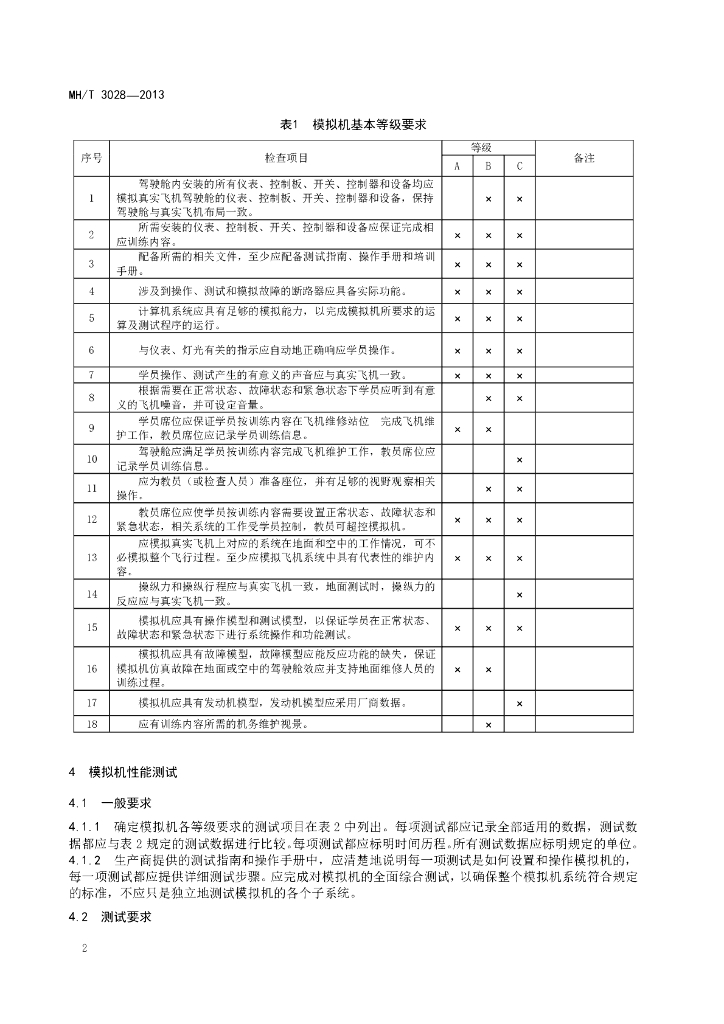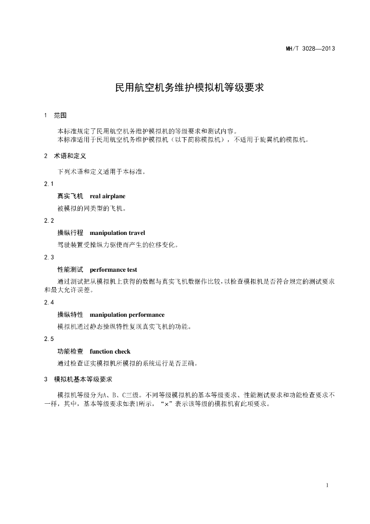 MH/T 3028-2013 民用航空机务维护模拟机等级要求