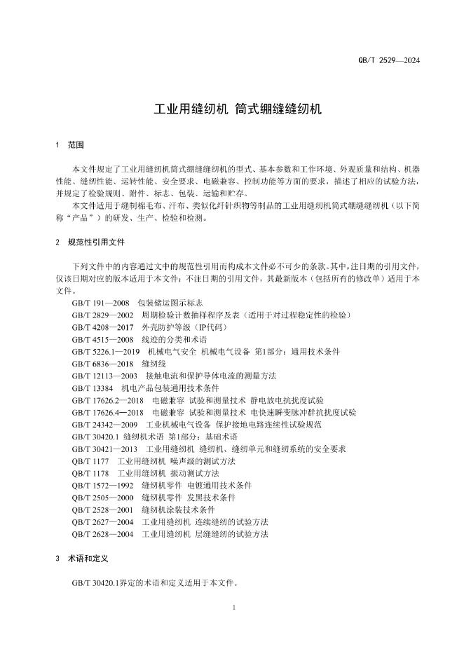 QB/T 2529-2024 工业用缝纫机 筒式绷缝缝纫机