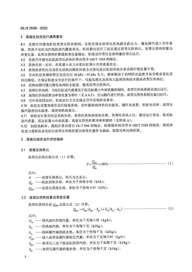 DL/T 2508-2022 直接空冷煤电机组高背压供热经济运行导则