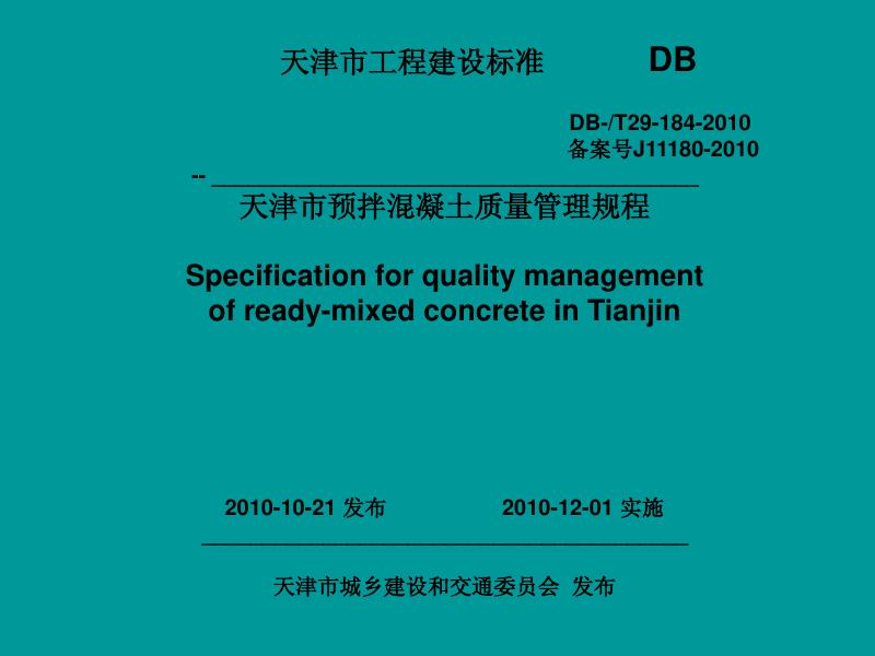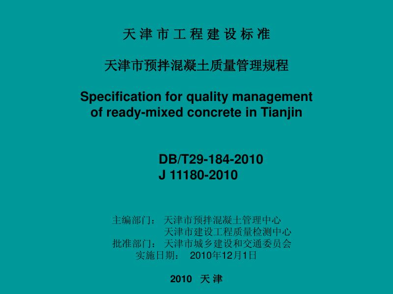DB/T 29-184-2010 天津市预拌混凝土质量管理规程