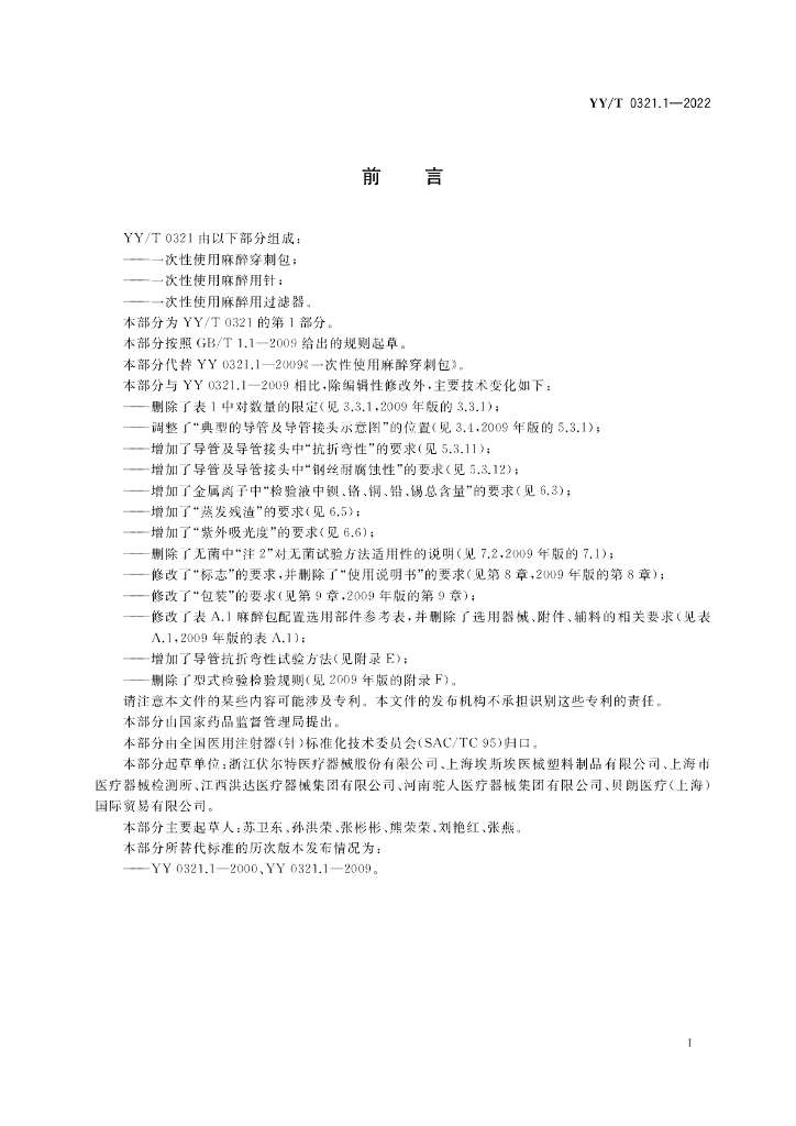 浙江伏尔特医疗器械股份有限公司、上海埃斯埃医械塑料制品有限公司、上海市医疗器械检测所、江西洪达医疗器械集团有限公司、河南驼人医疗器械集团有限公司、贝朗医疗(上海)国际贸易有限公司