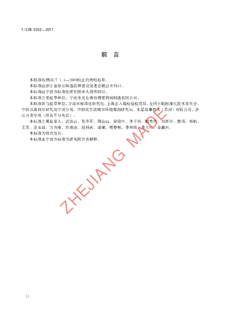 宁波市北仑海伯精密机械制造有限公司、宁波市标准化研究院、上海出入境检验检疫局、全国小艇标准化技术委员会、中国兵器科学研究院宁波分院、中科院宁波城市环境观测研究站、水星海事技术(苏州)有限公司、浙江万里学院