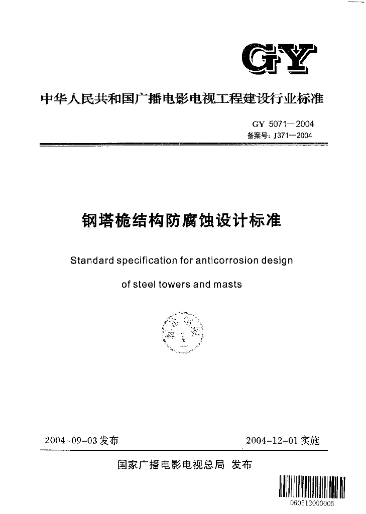 GY 5071-2004 钢塔桅结构防腐蚀设计标准